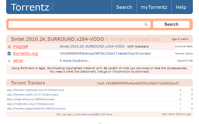 Torrentz has a powerful metasearch tool that indexes around 60,000,000 files. Entering a keyword into the search bar will give you all of the results. We recommend Torrentking to replace skytorrents.